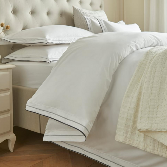 Luxury Cotton Percale Bedding Set in White, Silver, and Charcoal